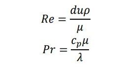 其中:λ:流體熱導率,W/(m·K);d:流體流通的管徑,m;u:流速,m/s;ρ:流體密度,kg/m3;μ:流體粘度,Pa·s;cp:流體定壓熱容,J/(kg·K)。