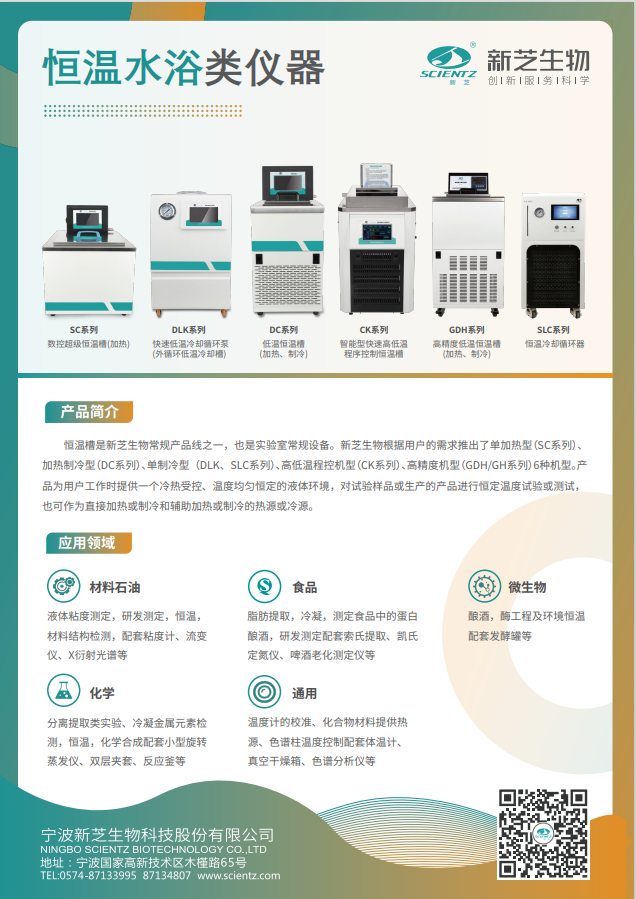 企業公眾號新芝生物專業研發生產超聲波細胞粉碎機、超聲波清洗機和超聲波細胞破碎儀等各種科研實驗儀器與工業化生產設備